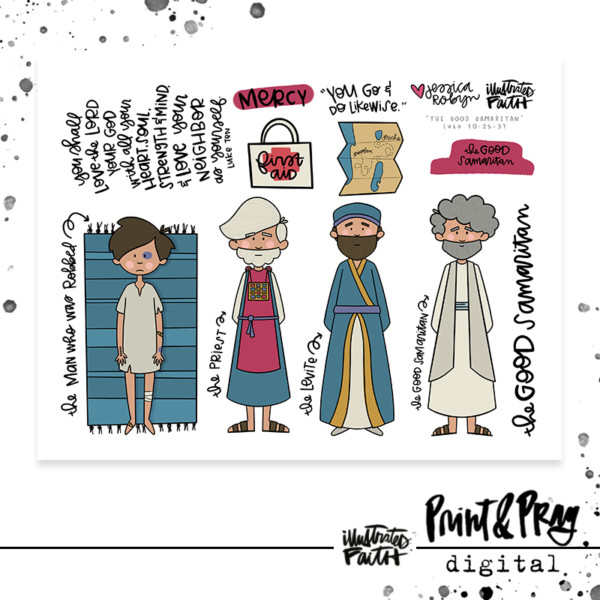 And finally, my oldest and I have enjoyed using Jessica Robyn’s Kids Cut Outs from the Illustrated Faith Print & Pray Shop to work through different Bible stories. In each digital printable set Jessica includes illustrations of different people in the Bible and other bits relevant to their story. The best part about these is that they’re digital, so that means instant access. And they can be printed over and over as many times as you’d like! We’ve used them as we read through a particular story; I cut out each piece and gave my guy a sheet of paper and a glue stick to keep his hands busy as he listens 🙂